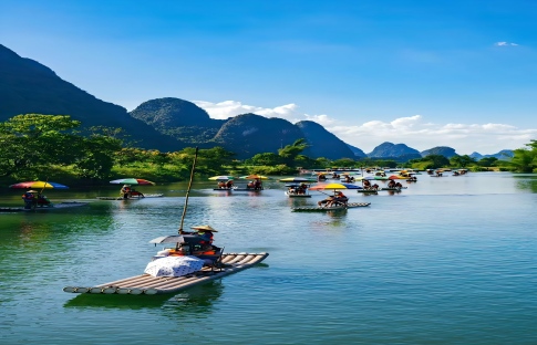 早餐后游览【阳朔戏楼:跨境购】,漫步戏楼,仿佛时光倒流,回到千年八桂古镇;参与其中能感受到全新的广西文化演绎,品味独特的八桂文化。车览【干里画廊】,游览漓江边最美、最清澈、最大的支流【遇龙河竹筏漂流】多人,开始乘竹筏漂流。进行一场环保、原生态游玩、由人工撑竹筏游览遇龙河。在竹筏上或欣赏两岸美景、或和旁边的竹筏打水仅、不管哪一种方式、都会让你宽得快乐、舒心。